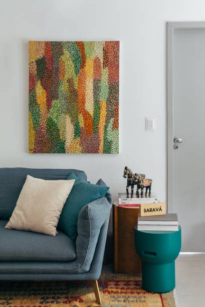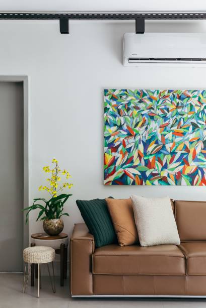 “Nos apaixonamos pela vista incrível e, mesmo sabendo que a reforma seria enorme, resolvemos encarar a compra do imóvel. Aproveitamos ao máximo os seus 140 m² e o pé-direito alto – um dos destaques do local. Além de dar a sensação de amplitude, é perfeito para atender às necessidades do meu marido que tem 2 m de altura”, conta Ana.
