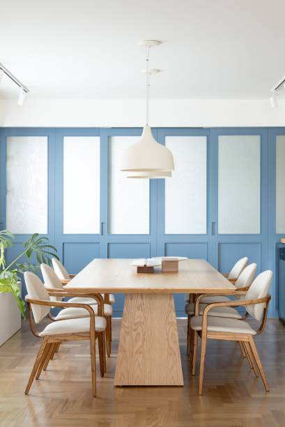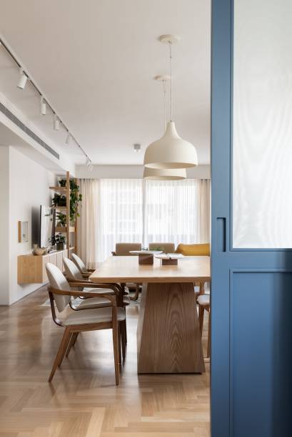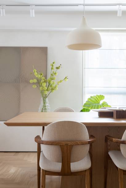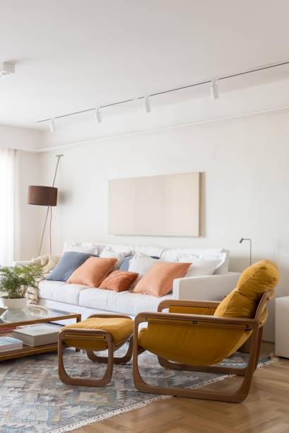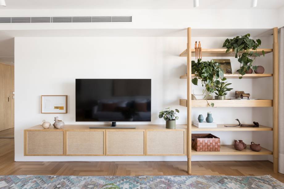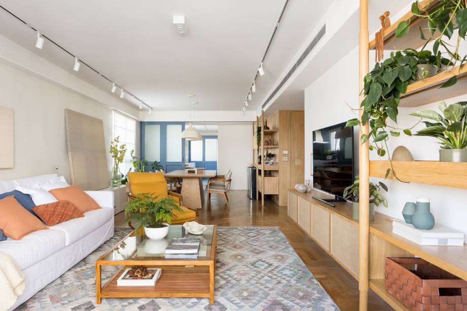 Um casal de cariocas, sem filhos, se mudou para São Paulo e comprou este apartamento antigo com 180 m², no Brooklin, já com a intenção de fazer uma reforma completa. Em seguida, os novos proprietários encomendaram um projeto às arquitetas Carolina Lerner, Gabriella Mello Alves e Sabina Kalaoun, do Studio Lak Arquitetura, incluindo a decoração de todos os cômodos. “No geral, os clientes pediram um lar aconchegante e vibrante, com cara de casa, além de madeira clara e toques de cor na marcenaria e na decoração”, conta Gabriella.