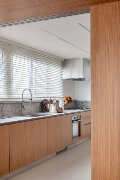 “Preferimos uma decoração mais clean e minimalista, mas, na hora de escolher móveis, tecidos, materiais e revestimentos, optamos por produtos que proporcionam a sensação de conforto e de aconchego”, conta Sabina. Como o imóvel já tinha uma planta muito boa, o principal desejo do casal era criar uma sala espaçosa que tivesse a possibilidade de integrar ou isolar a cozinha, além de uma sala íntima com dupla função: tv e hall de distribuição dos quartos.