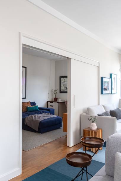 Para modernizar o projeto, os profissionais realizaram intervenções pontuais de pintura e marcenaria. Essas mudanças sutilmente transformaram o espaço, criando uma base perfeita para a decoração planejada.