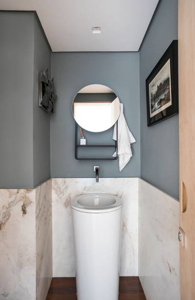 Buscando um estilo contemporâneo, porém sofisticado e muito aconchegante, a opção foi um mix de madeira e mármore. A marcenaria, projetada sob medida, foi idealizada pelo próprio escritório. “A paleta de cores do projeto é neutra, para enaltecer o mobiliário e obras de arte”, comenta a arquiteta Gabriela.