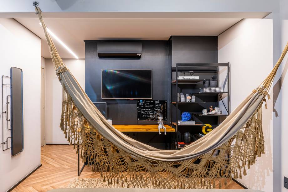 O projeto da arquiteta Shirlei Proença conta com o conforto de cantinhos de balanço, cadeira pendente e até rede!