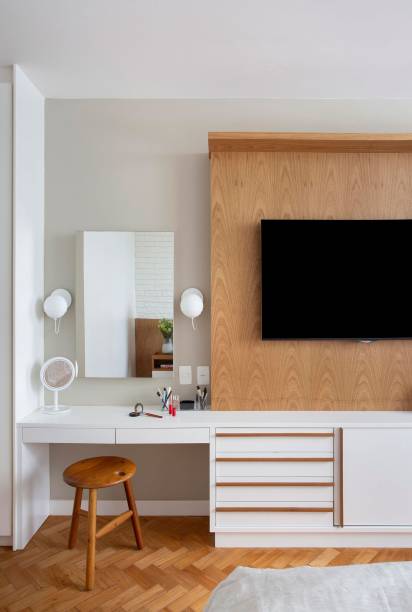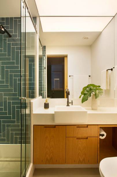 - “Cubo” de madeira freijó divide ambientes neste apê de 100 m²
