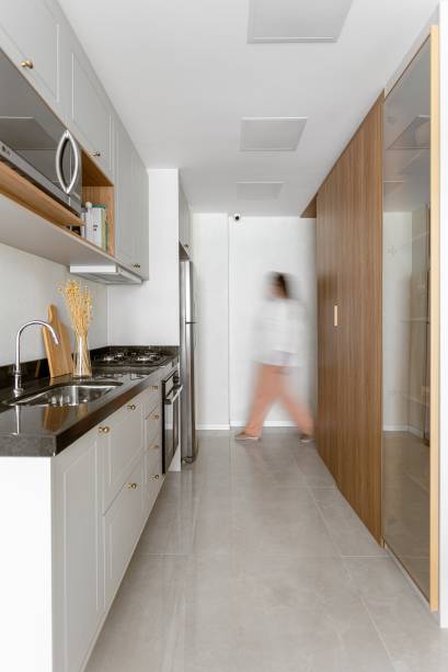 “Sem alterar os acabamentos padrão, a construtora nos pediu um projeto com características que agradassem compradores de perfis variados, repleto de boas soluções de aproveitamento de espaços para mostrar todo o potencial de um imóvel compacto, inclusive para acomodar confortavelmente uma família de quatro”, conta o arquiteto Phil Nunes.