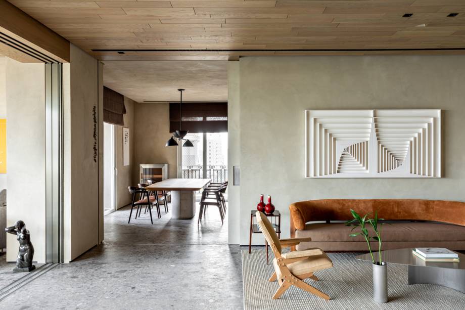 Apê de 560 m² recebe materiais rústicos e cavaletes de Lina Bo Bardi