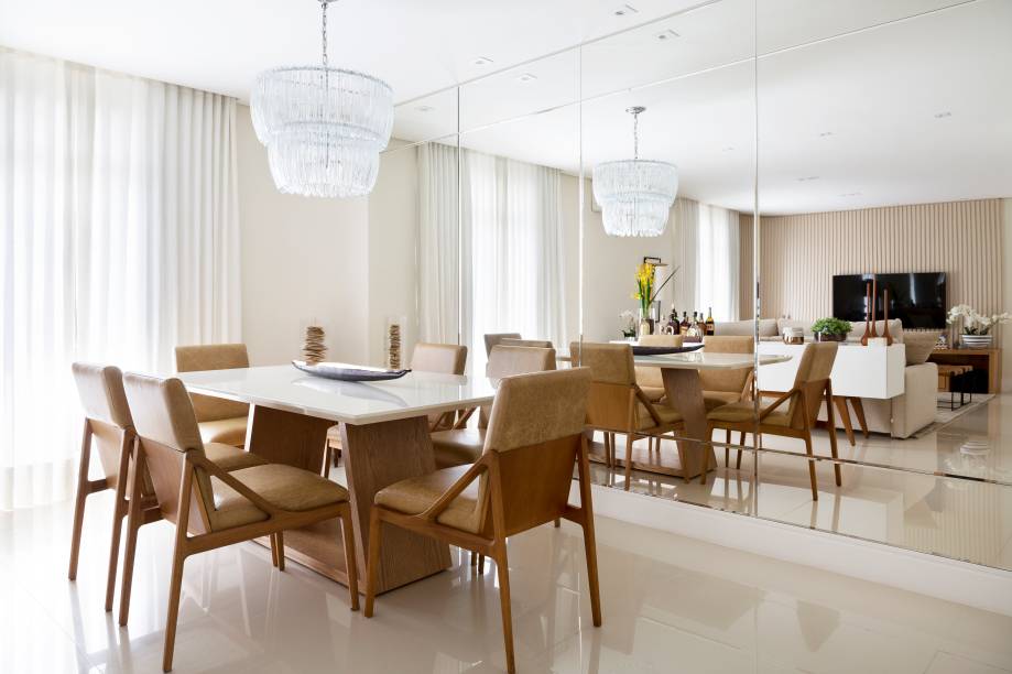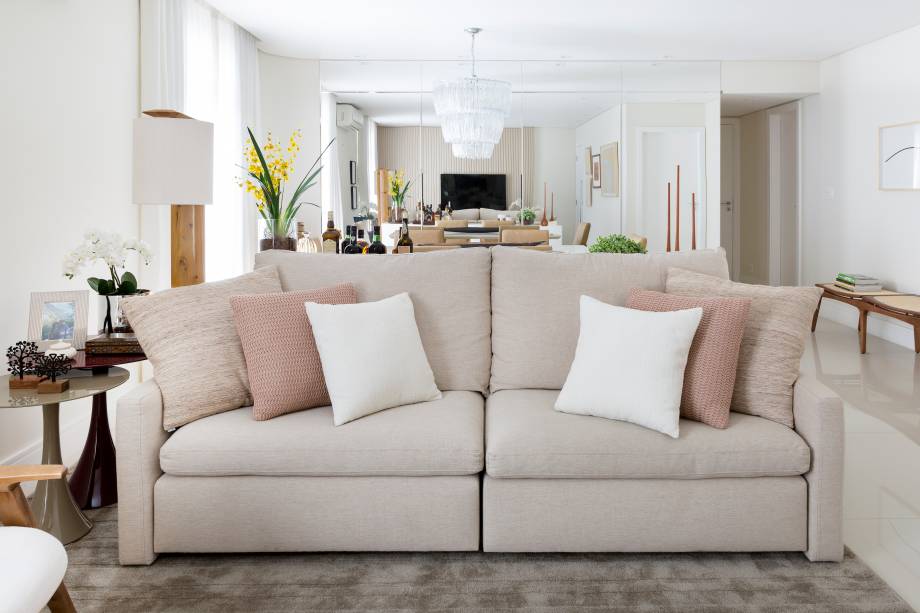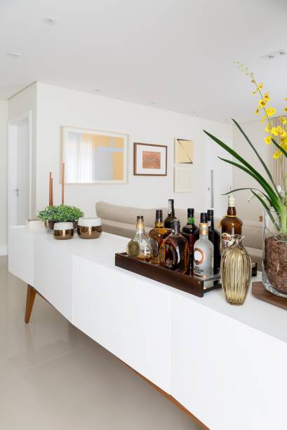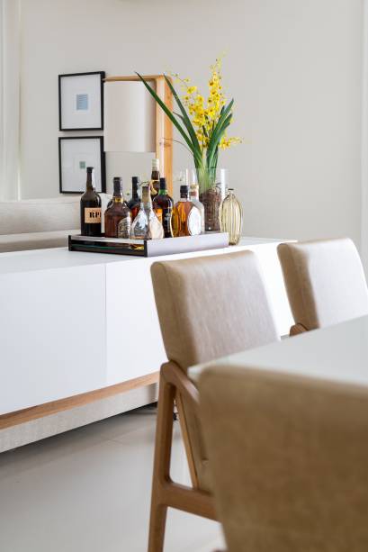 O projeto assinado por Juliana Muchon foi feito para um casal de jovens advogados cariocas, mais reservados, que procuravam ter em casa um espaço bem tranquilo e confortável para se desconectar do dia a dia. No espaço de 150 m², os tons claros de off white e nude são a essência da casa, trabalhados junto com a madeira natural ora em freijó, ora em carvalho americano. Além disso, também se vê bastante o uso de laca.