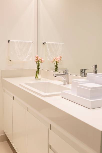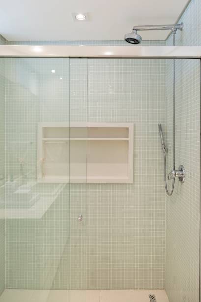 O banheiro social foi o que sofreu a maior mudança, tendo sido integrado ao antigo banheiro de serviço, a distribuição das peças foi mexida para ganhar um layout mais funcional e espaçoso.