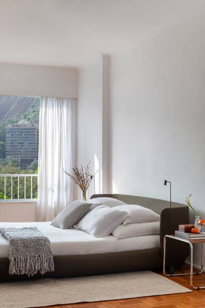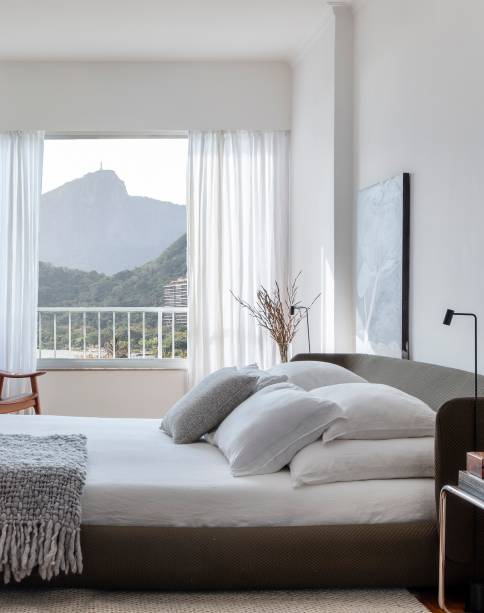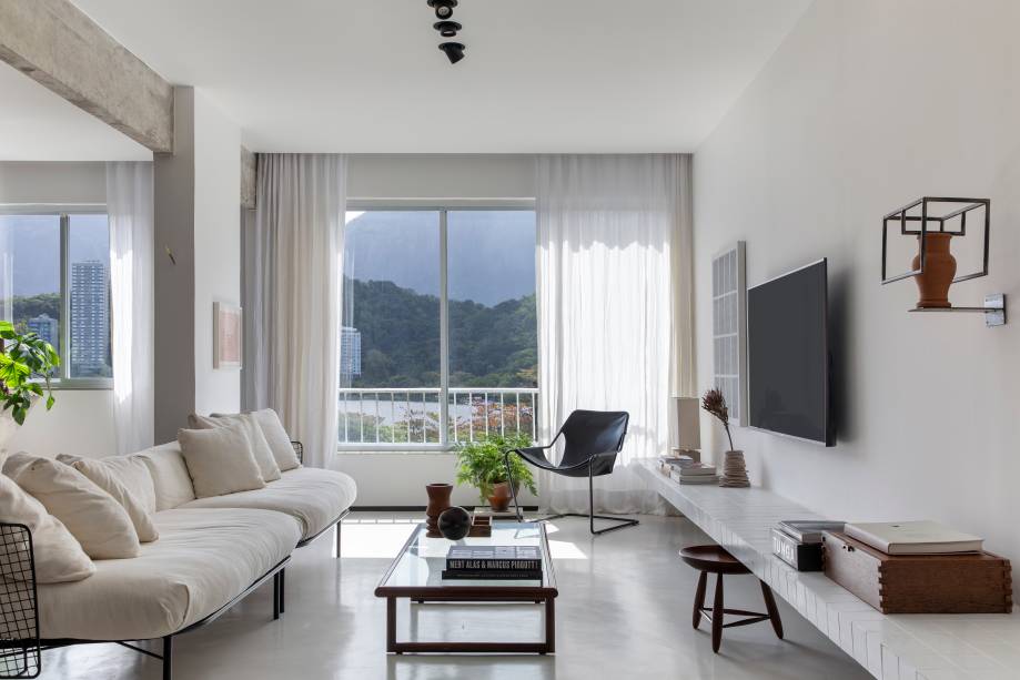 Debruçado sobre a Lagoa Rodrigo de Freitas, na Zona Sul do Rio de Janeiro, este apartamento com 210 m² foi o primeiro de cinco imóveis que o casal João Panaggio, do escritório Panaggio Arquitetura, e Fil Freitas visitou logo após a decisão de morar junto pela primeira vez. Mesmo sabendo que seria necessário reformar a cozinha e os banheiros e criar um lavabo, uma das coisas que mais chamou a atenção do arquiteto foi a luz natural ocupando os espaços vazios, além vista de quatro cartões postais da capital fluminense: Lagoa, Pedra da Gávea, Morro Dois Irmãos e Cristo Redentor.