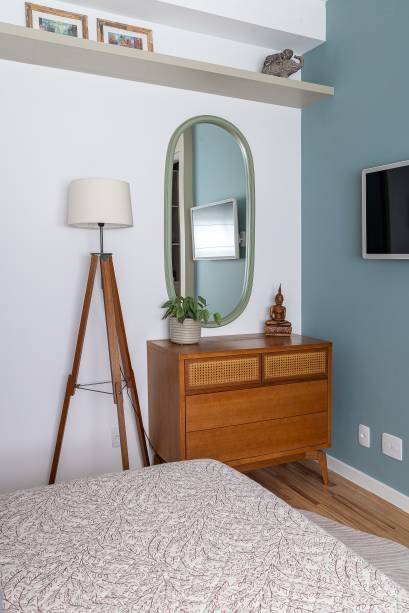 Decoração afetiva: apê de 70 m² tem azulejos, objetos de família e pegboard na cozinha