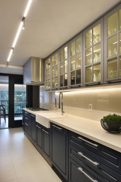 Os tons neutros com a predominância da cor azul foram o ponto de partida para a elaboração de uma atmosfera que remete aos lofts nova-iorquinos e ao estilo industrial londrino.