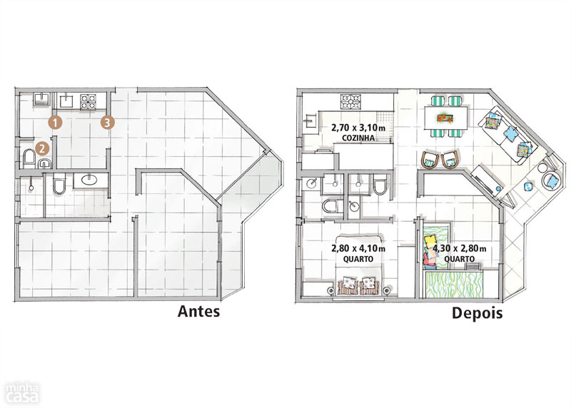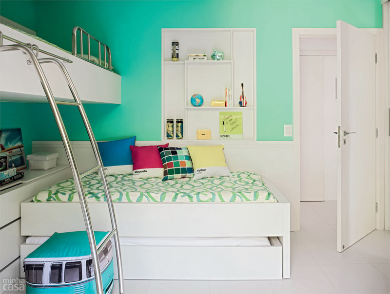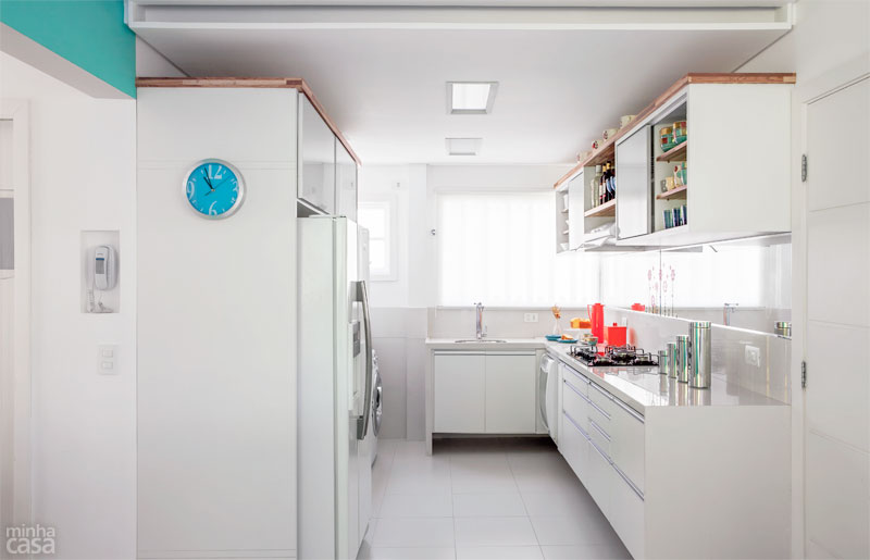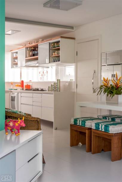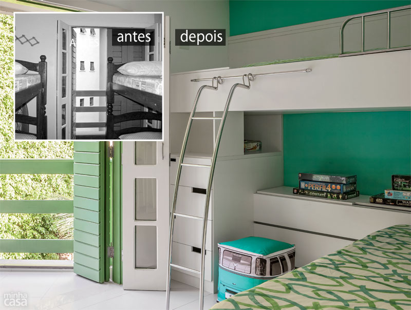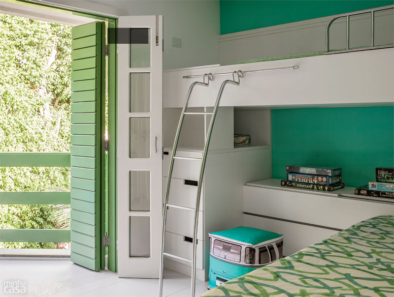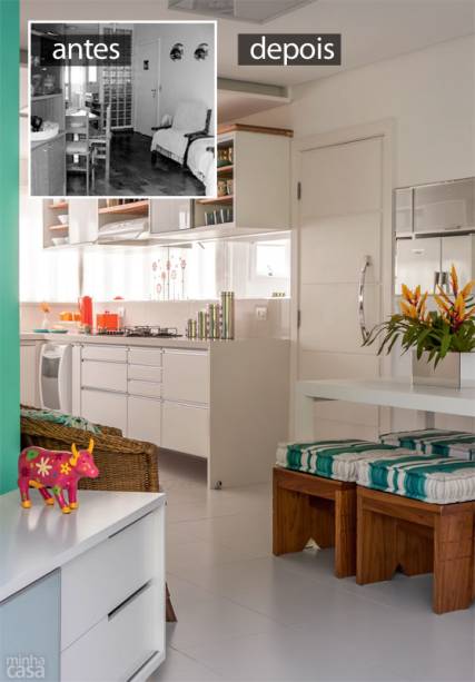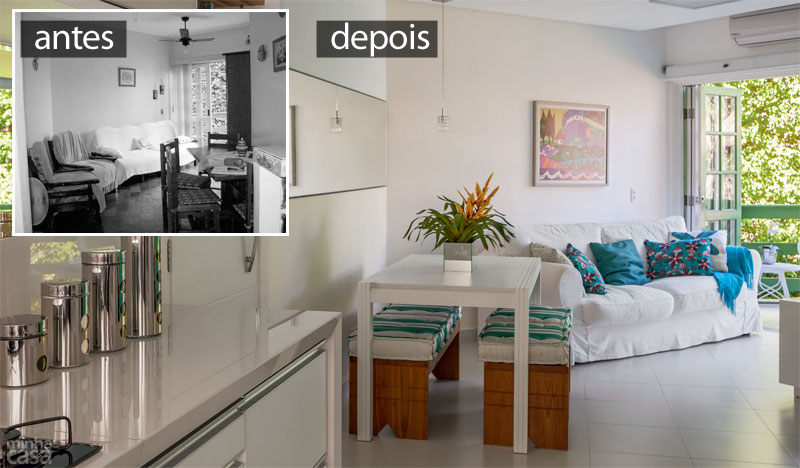 Família moderna é assim: Tânia mora em Minas Gerais com os filhos dela, Lucas e Giulia (abaixo da mãe, nas fotos), e Marcos, o marido, vive em São Paulo com as filhas dele, Juliana e Bruna. O apartamento na praia é onde a turma gosta de se reunir. No dia a dia, 260 km separam a família. Não por acaso, todos esperam ansiosos pelos feriados e férias. O destino é a praia de Tabatinga, em Caraguatatuba, no litoral norte de São Paulo. Adquirido em 2009, o apartamento da década de 1990, dentro de um condomínio, era escuro e sem graça. “Compramos, usamos durante duas semanas no verão e decidimos encarar a reforma”, conta Tânia Caldas. Finda a alta temporada, quando obras são proibidas no prédio, a arquiteta Gina de Paulo, do Idea Estúdio, recebeu as chaves e carta branca para agir. “Tudo veio abaixo, até uma das esquadrias externas, substituída por outra semelhante”, diz, relatando os quase cinco meses de trabalhos. Com mais um banheiro e cozinha integrada à sala, o imóvel de 60 m² tornou-se funcional e preparado para receber parentes e amigos – e agora reflete a alegria dos encontros.