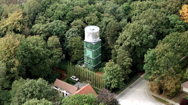O reservatório de água permaneceu abandonado por muitos anos, até que a prefeitura da cidade decidiu vendê-lo. Um arquiteto e paisagista local transformou a construção em sua casa dos sonhos. Trabalhando em parceria com Jo Crepain, criou um projeto simples de apartamento com seis andares e com um jardim de inverno bem abaixo da antiga caixa d’água de concreto.