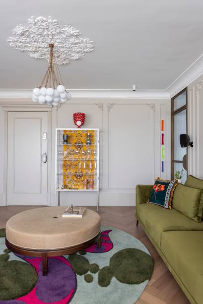 Boiseries, florões, sancas e estampas dão ar europeu a apê de 115m²