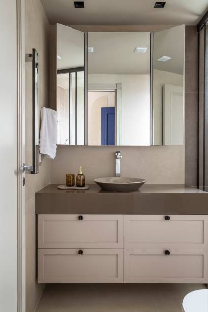 Integralmente nova, a decoração é uma mistura de conceitos, cores, texturas e muita troca de ideias e informações entre a cliente e a arquiteta. O lavabo, por exemplo, é um ambiente lúdico e cênico, pensado para impactar, surpreender as visitas.