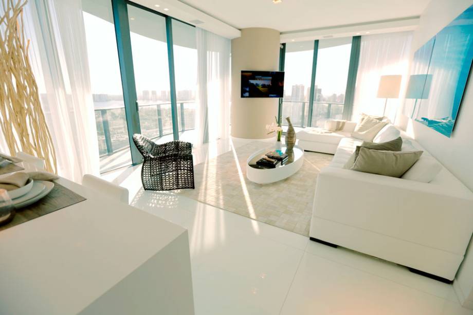 Pronto para começar a receber os proprietários, o residencial Regalia Miami, na orla de Sunny Isles Beach, no Sul da Flórida, é o primeiro projeto imobiliário de luxo concluído na região desde a grande crise econômica de 2008. Conhecido como “prédio dançante” (devido ao seu design em forma orgânica de vento, a posição das sacadas em ângulos diferentes dá a ilusão de que o prédio “dança”), o edifício iniciou as obras em 2011 e já tem 85% das unidades comercializadas. “Além dos americanos, nossos compradores são em sua maioria investidores do Brasil, Argentina, Venezuela, Canadá e Rússia, entre outros países”, afirma Louis Montello, presidente da construtora Regalia Beach Developers, destacando o sucesso de vendas do projeto. Localizado no último lote de frente para o mar ainda disponível na cidade, os valores das unidades do Regalia iniciam em US$ 10 milhões e podem chegar a US$ 40 milhões.