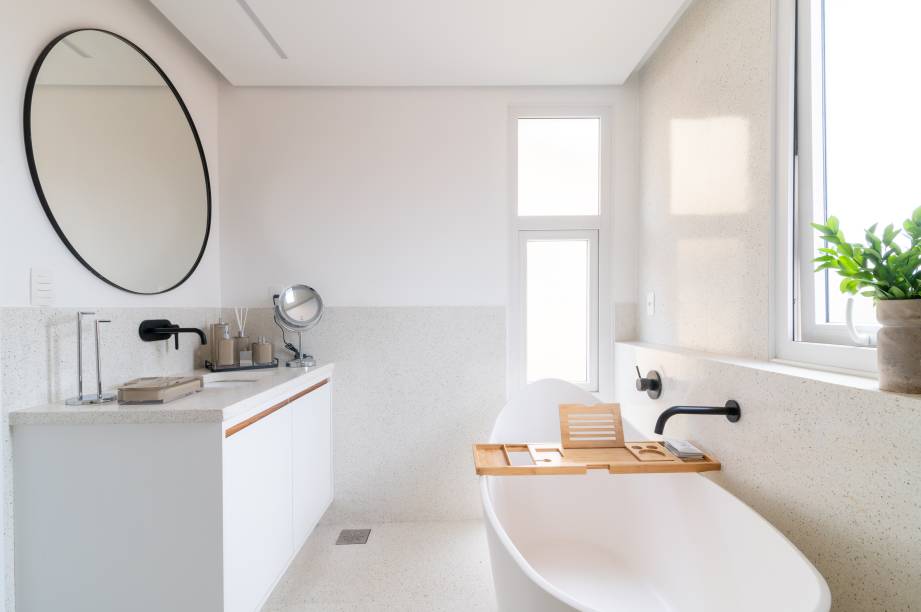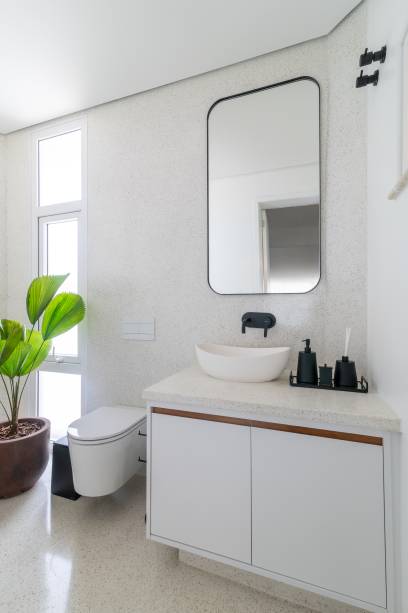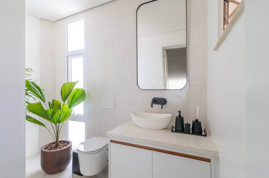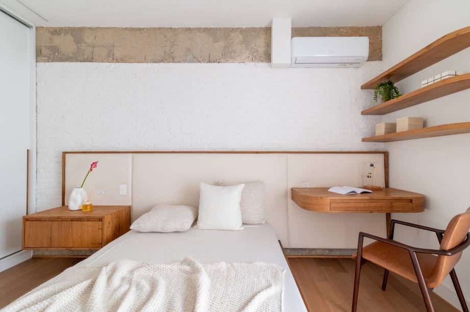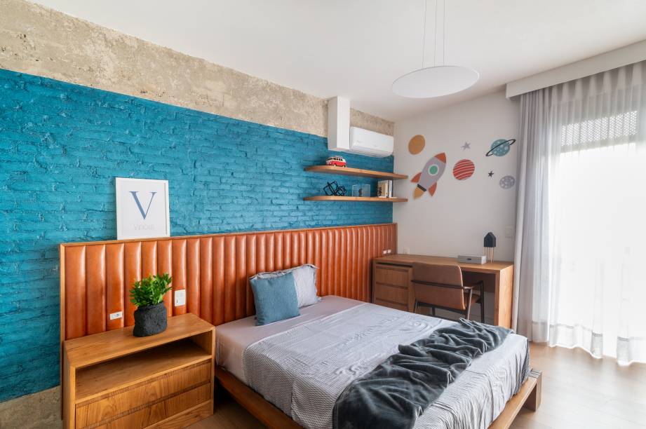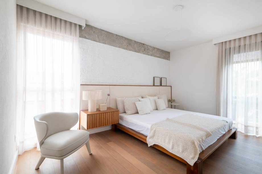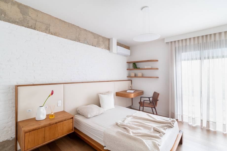 O conforto térmico foi contemplado graças à esquadrias de PVC e janelas que melhoram a ventilação e a luminosidade. Tijolos aparentes e tinta TerraCal adicionam um toque acolhedor ao ambiente. Todos os móveis foram adquiridos novos, criando uma identidade única. A marcenaria foi elaborada com cuidado, utilizando madeira nos quartos e granilite nos banheiros.