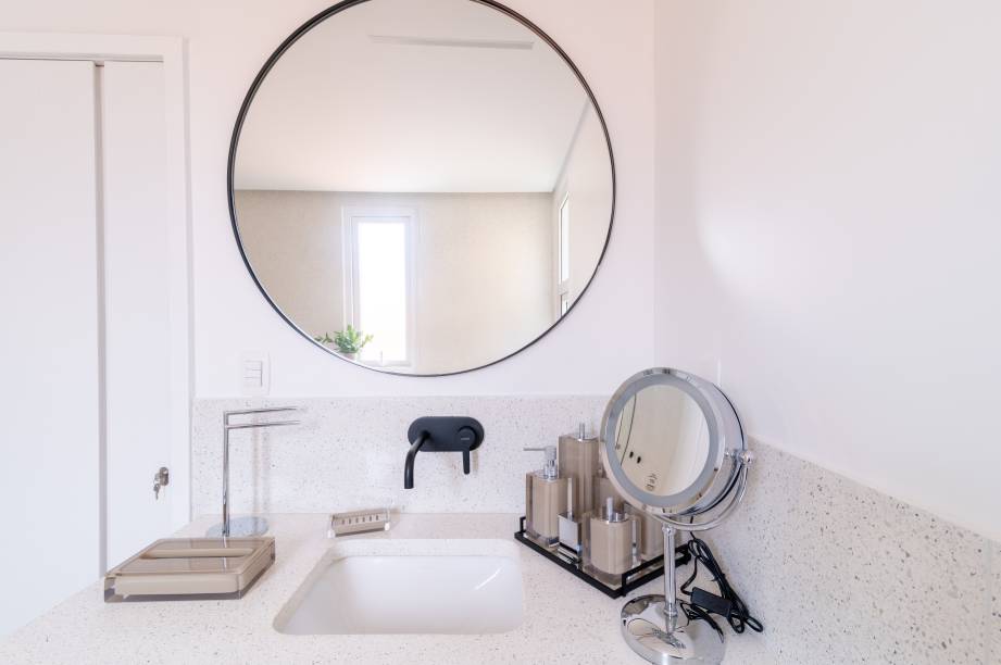 Desenvolvido pela Lab Luz, o projeto de iluminação foi pensado para manter a altura do forro em áreas como a cozinha e os quartos, criando um espaço arejado e bem iluminado.