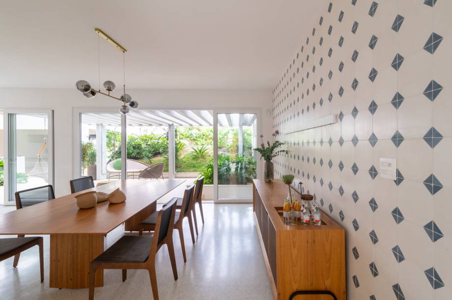 O escritório Giann Freire Arquitetura criou um ambiente social integrado e fluido na casa de 300 m².