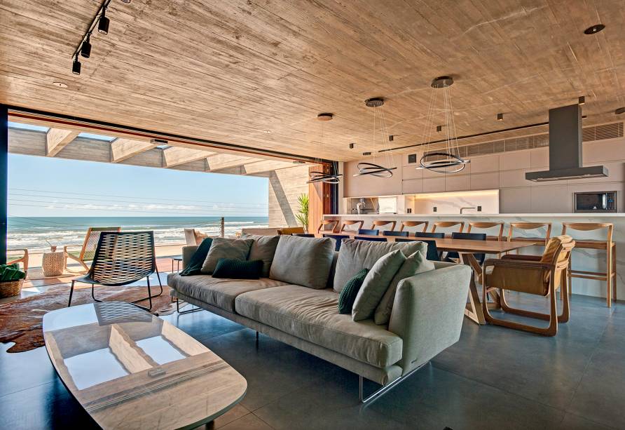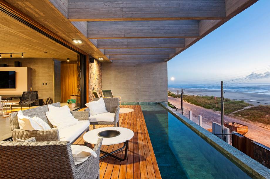 À beira mar da praia de Xangri-lá, no Rio Grande do Sul, esta casa de 350 m² tem uma dinâmica diferente da tradicional: a área íntima está no térreo, enquanto a área social ocupa o segundo pavimento, aproveitando ao máximo a vista eterna para o mar.