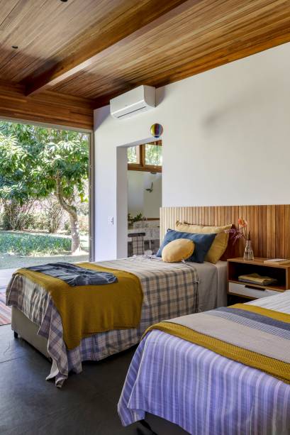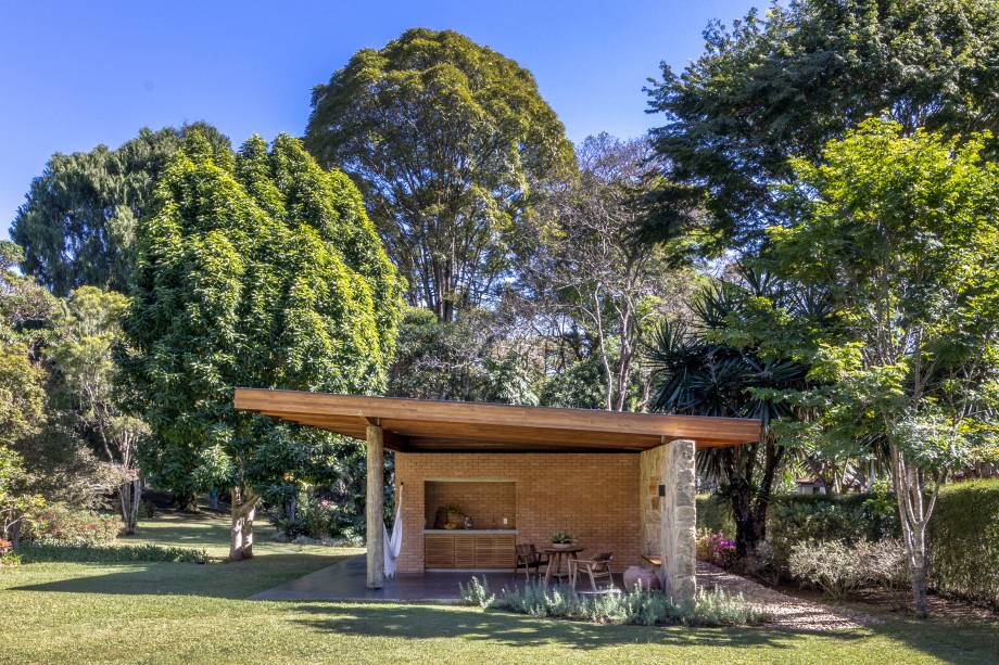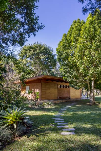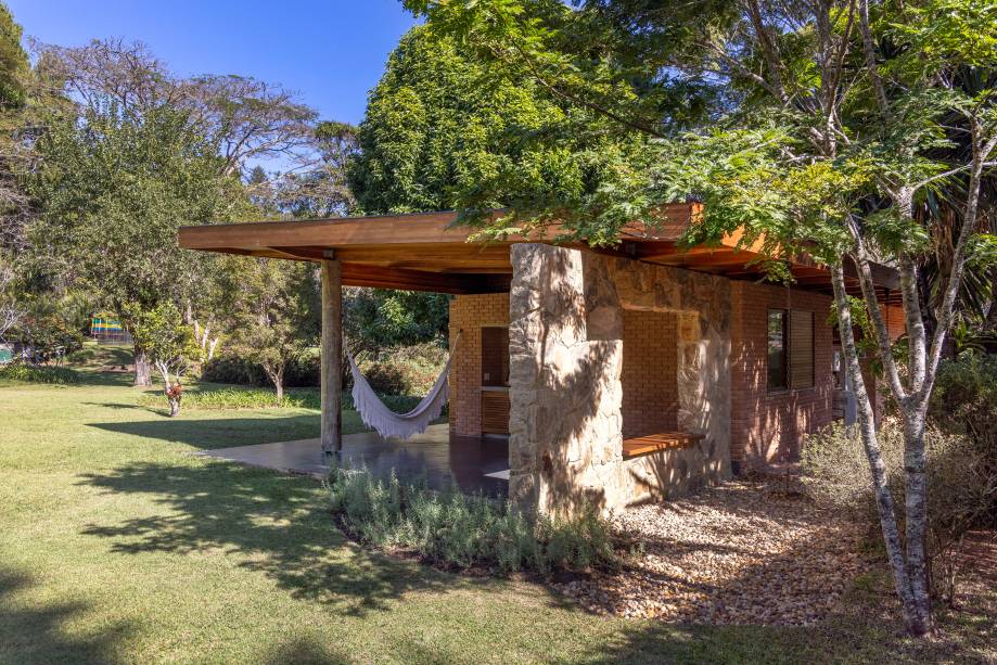 A casa de hóspedes de campo pode abrigar até seis pessoas e foi projetada do zero pela arquiteta Fabiana Cyon, em parceria com a arquiteta Ana Paula de Castro.