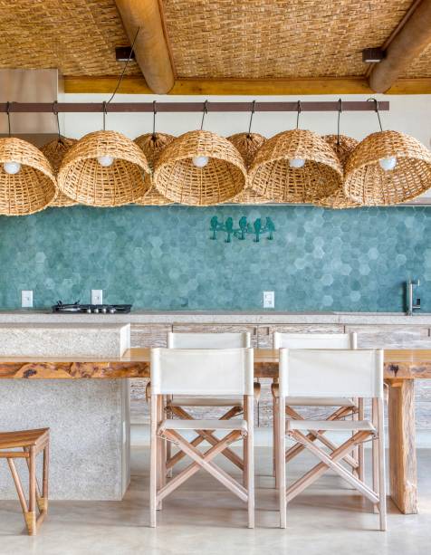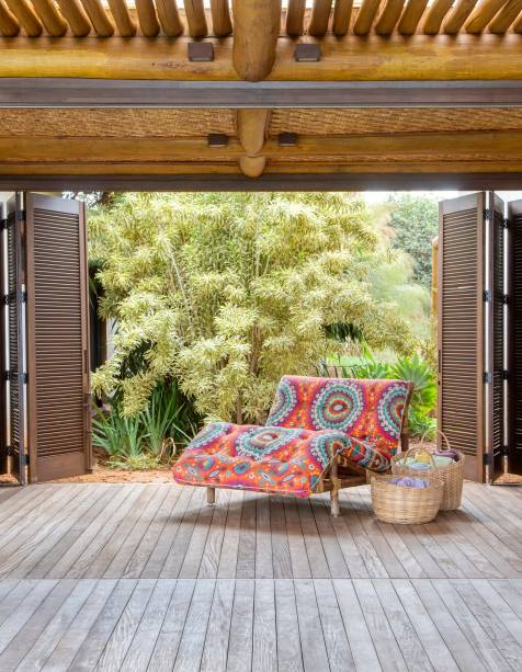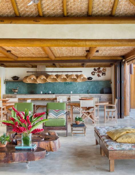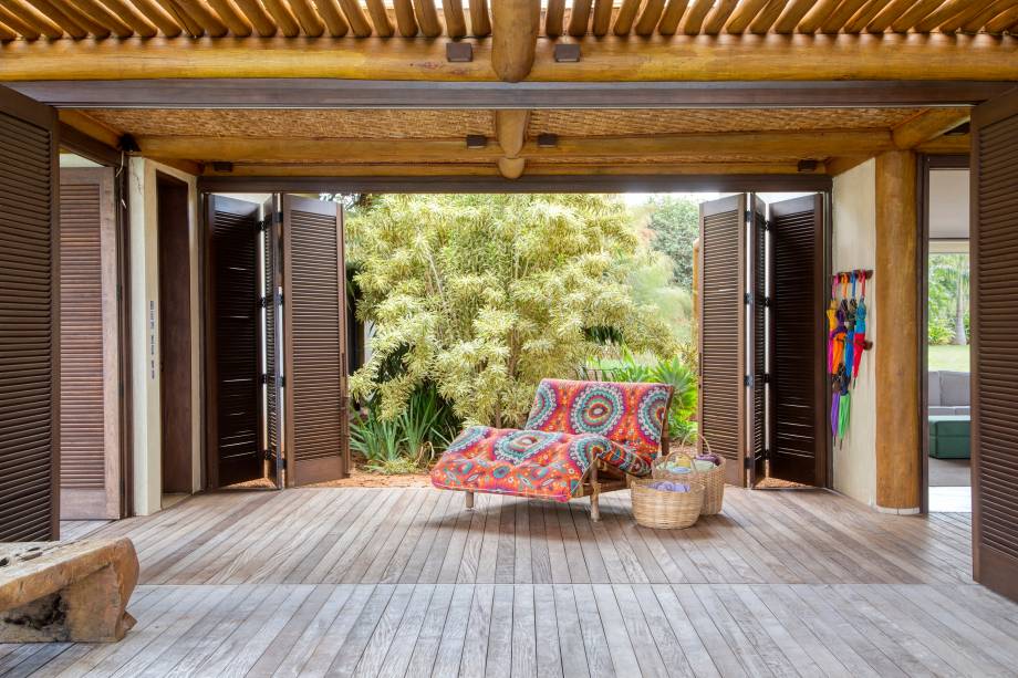“Os clientes solicitaram uma casa aconchegante e atemporal, com estilo rústico-chic atemporal e toques de cor, além de espaços amplos de convivência, com as áreas social interna e a gourmet externa integradas”, conta Solange.