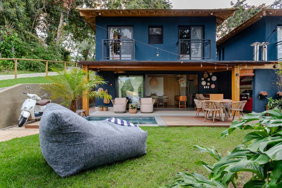 Casa de praia de 115 m² em meio à Mata Atlântica ganha linda fachada azul