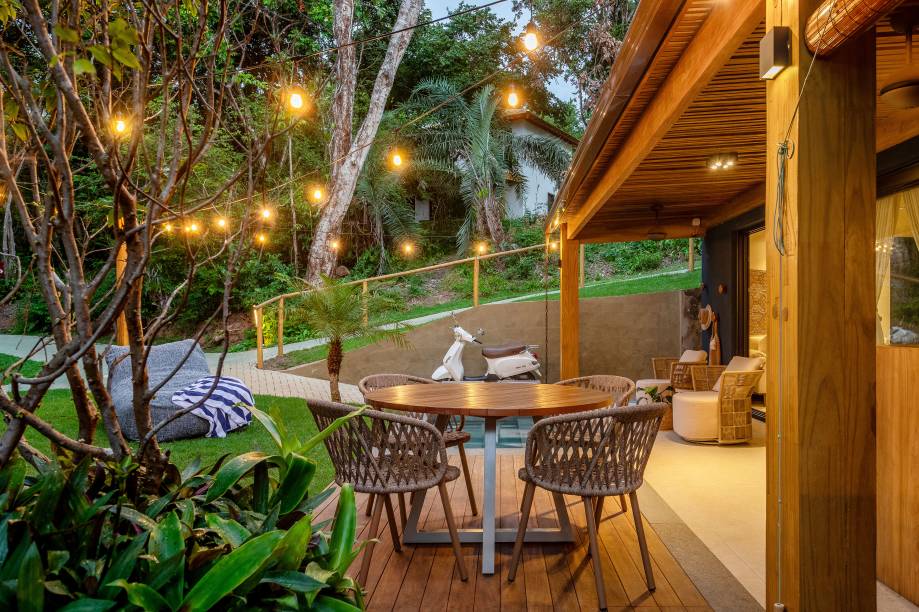 Nos interiores, a arquiteta Juliana Zappa apostou nas texturas como madeira, sisal, palha e tecidos naturais para conferir um ar despojado.