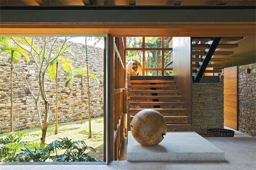 Em situações como a desta casa projetada pelo arquiteto paulista Gui Mattos, nas quais uma árvore existente no terreno é abraçada pela construção, o maior cuidado deve ser com a poda. Observe também se a espécie existente não tem raízes que possam prejudicar as fundações. As dicas abaixo vieram de Gilberto Elkis, autor do projeto paisagístico, e de Henrique Pestana, engenheiro agrônomo de sua equipe