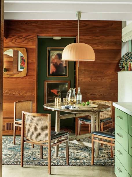 Quem a ajudou a executar a sua lista de desejos foi a empresa de design Pierce & Ward. A cofundadora, Emily Ward, e Johnson já eram amigas: “Basicamente, fizemos moodboards e focamos na seleção do tecido e vinho. O maior desafio da renovação foi o segundo andar, feito inteiramente de cortiça, o que era muito legal, mas não era recuperável”, explicou a profissional.