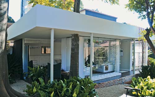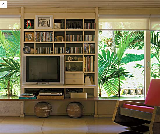 “Há mais de 20 anos, quando ganhei dos meus pais este terreno cercado de verde , a única forma de habitá-lo rapidamente, sem gastar muito, foi construir uma casa pré-fabricada. Escolhemos uma versão de 102 m², com três quartos , mas com o tempo tivemos duas filhas e faltou espaço. Junto com meu marido, o arquiteto Ricardo Hachiya, planejei ampliar a sala incorporando parte da varanda e encomendei uma estante para embutir a TV. O nosso quarto virou uma suíte ampla, com direito a uma banheira ao ar livre. No final, terminamos com 126 m², mais a varanda de 50 m². Tudo é tão gostoso e aconchegante que constantemente investimos em melhorias – recentemente, instalamos a porta que divide a cozinha e a sala de jantar. É uma obra sem fim, mas sempre nos dá prazer renovar a casa.”