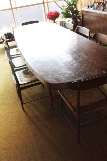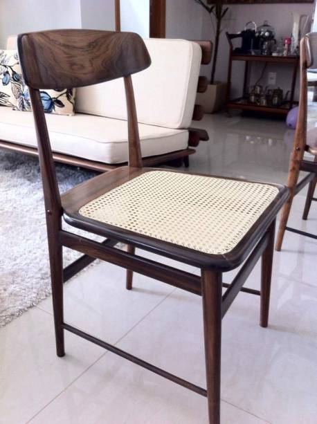 Renata Raynaud, designer de interiores, recebeu uma casa mobiliada de herança que se revelou algo único: tinha projeto de Oscar Niemeyer e móveis desenhados por Sergio Rodrigues. Entre os 107 móveis, há as famosas cadeiras Mole, além de várias peças feitas sob medida: camas, sofás, estante mesa de jantar de três metros (com 12 cadeiras de Jacarandá da Bahia). Tudo ficou para Renata – algumas estão na casa herdada, outras no seu apartamento e seis delas foram vendidas. Há ainda móveis que precisam de restauro. O marido de Renata, Fernando Argollo, advogado, entrou em contato com Instituto Sergio Rodrigues para viabilizar a reparação.