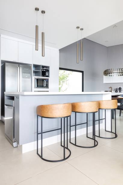 Para neutralizar as variações de metais, novos pendentes foram especificados para a cozinha e para a sala de jantar, que também ganhou nova mesa, assinada pelo escritório, de modo a favorecer a circulação.