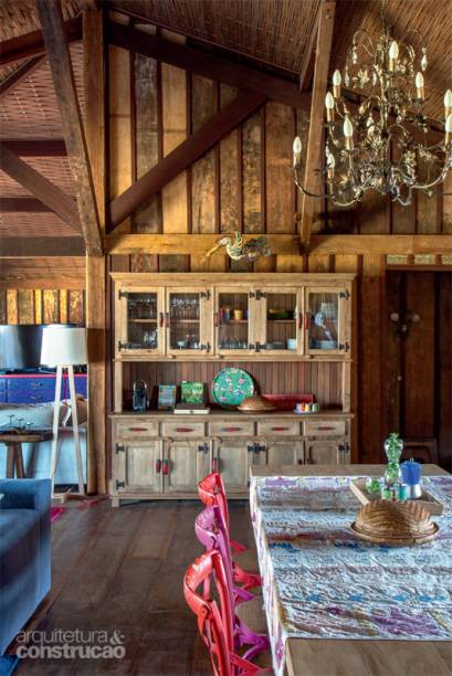 No alto da montanha, esta casa foi montada com piso e paredes de madeira de demolição, recriando a estética dos galpões do Sul do país num vilarejo da serra fluminense