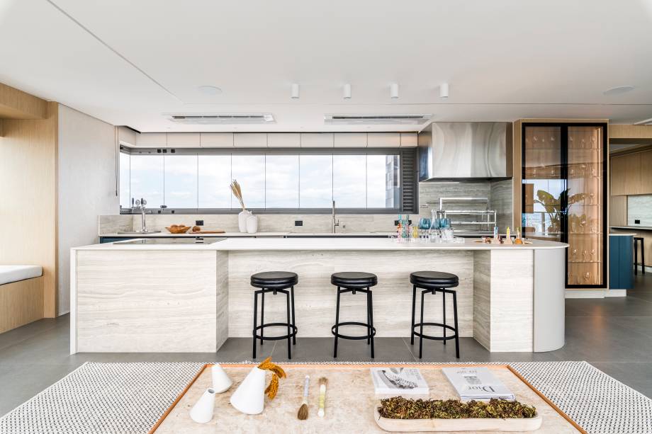 “A principal diretriz foi integrar arte e design ao ambiente, criando espaços para receber amigos e desfrutar do dia a dia. Por isso, optamos por elementos como cinema, bancadas altas e móveis diferenciados para promover interações”, contam as arquitetas.