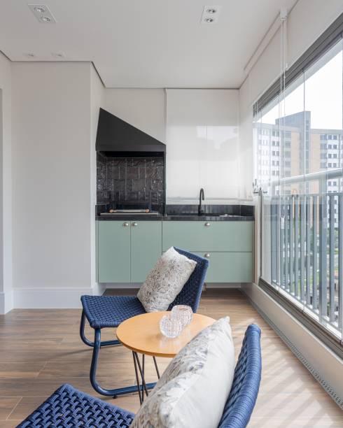 O estilo contemporâneo é predominante no projeto. “O estilo contemporâneo tem como característica principal, a funcionalidade com espaços amplos e integrados, trazendo uma percepção de liberdade e fluidez”, conta a arquiteta. Com isso, a cozinha, antes isolada, foi integrada às salas, promovendo a convivência social entre os moradores no cotidiano.