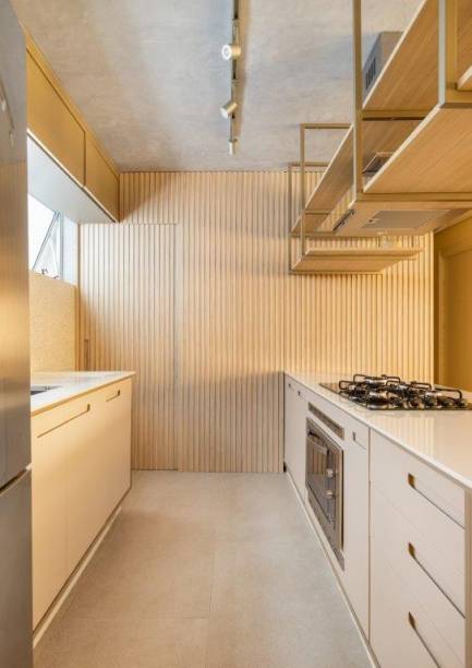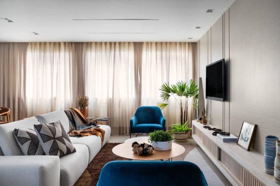 Este apartamento de 100 m² passou por uma reforma completa para atender aos desejos da moradora, uma senhora aposentada com estilo de vida jovem, que gosta de receber família e amigos, cozinhar e assistir a um bom filme. Dentre as solicitações, uma ampla e integrada área social e um closet atrelado à sala de banho. Todos eles foram contemplados arquitetos Lucas Blaia e Bruno Moura, do Blaia e Moura Arquitetos.