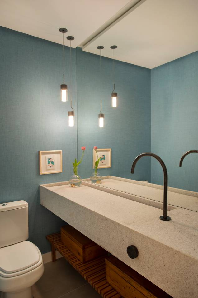 O projeto, assinado pelo escritório Mar Arquitetura, criou um apartamento com cômodos multifuncionais, bem iluminados e atemporais
