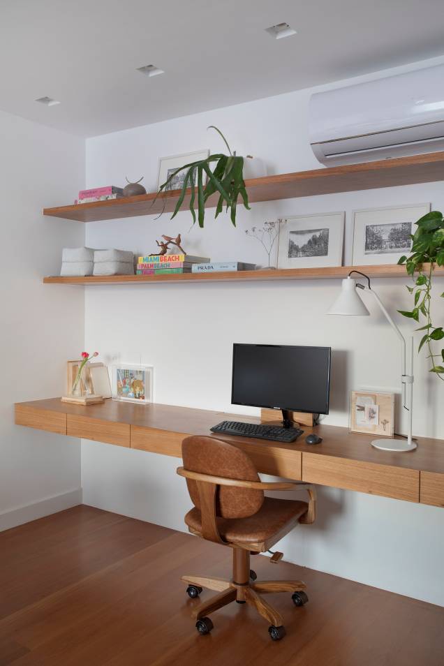 “Também modificamos o layout da suíte do casal, no andar superior, para que coubessem dois closets e um banheiro amplo, além do home office, que é integrado ao dormitório”, acrescenta Alexia.