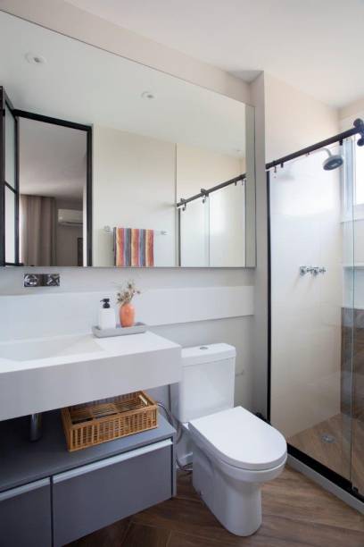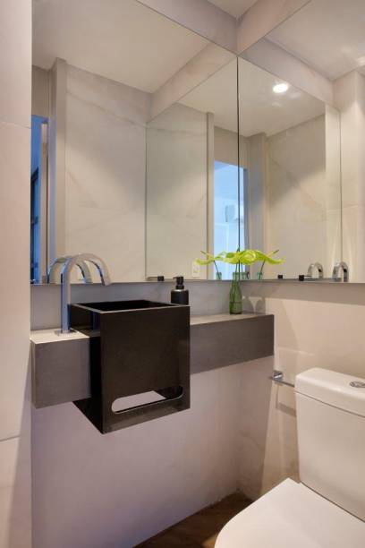 Em termos de arquitetura, a mudança da planta valorizou o apartamento. Originalmente, ele possuía por uma suíte e um banheiro social, que atendia a sala e o segundo quarto. Os arquitetos conseguiram, com ajustes na arquitetura, transformar o banheiro de serviço pouco utilizado em lavabo, e converter o banheiro social em suíte.