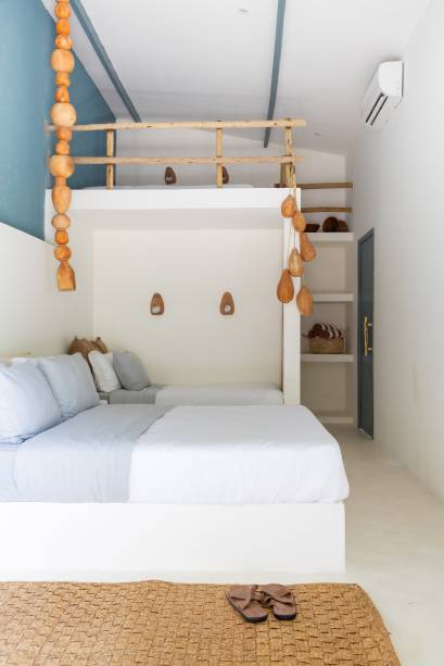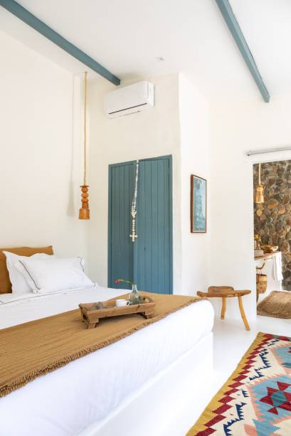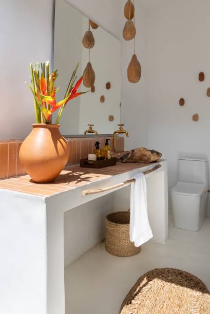 Com diversas peças de decoração fornecidas por artesãos e artistas locais, cada objeto foi especialmente selecionado pela designer para dialogar não apenas com os ambientes, mas principalmente com os indivíduos, neste novo lar. Comunicando espacialmente as delicadezas envolvidas neste projeto, outros detalhes decorativos, como os banquinhos, foram feitos à mão por artesãos da Ilha do Ferro, utilizando madeira nativa da caatinga.