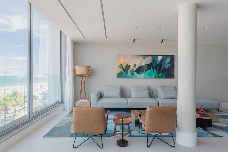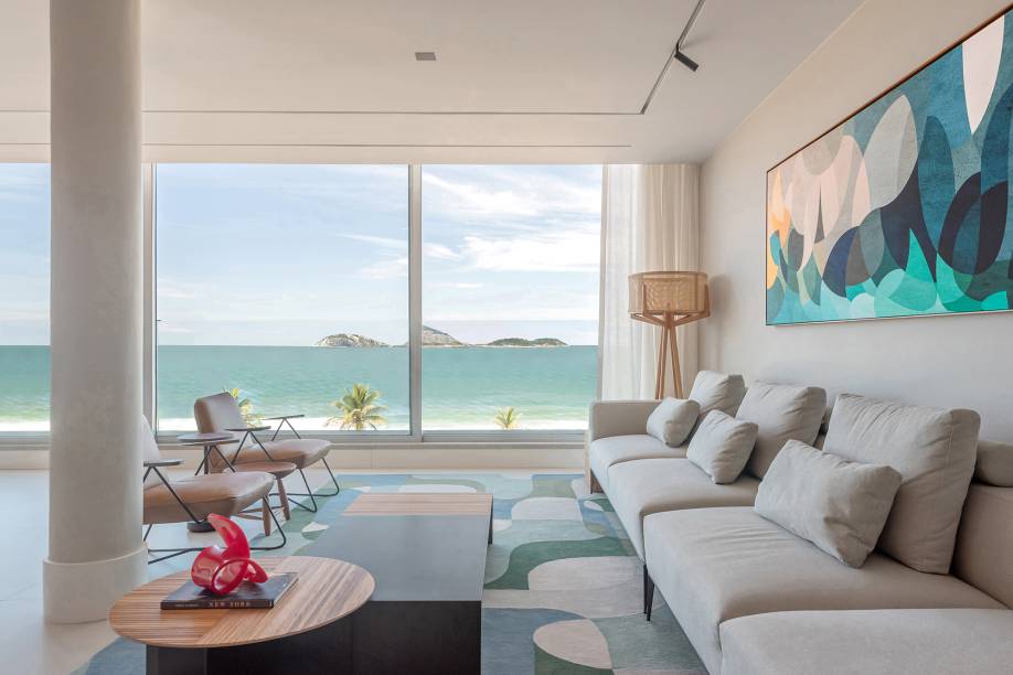 No projeto da arquiteta Maria Augusta Bittencourt há cinco quartos e uma ampla área social com vista para o mar de Ipanema