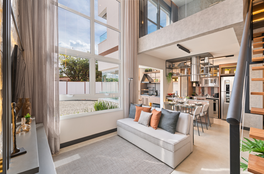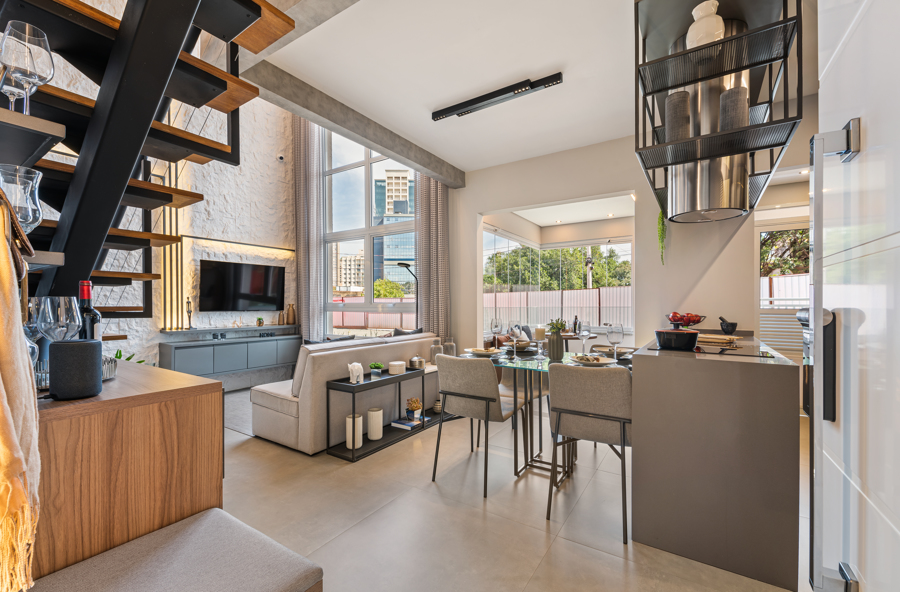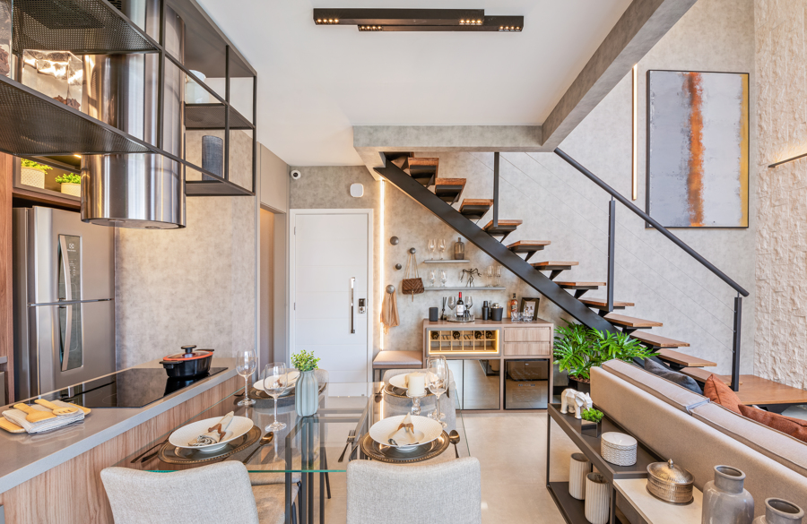 A tendência dos duplex pequenos tem crescido nos últimos anos, especialmente nas grandes metrópoles do país, devido ao aumento da urbanização e ao alto custo do metro quadrado em áreas centrais das cidades. Esses novos formatos oferecem uma solução que tira proveito da verticalidade dos layouts, sem deixar de lado a integração.