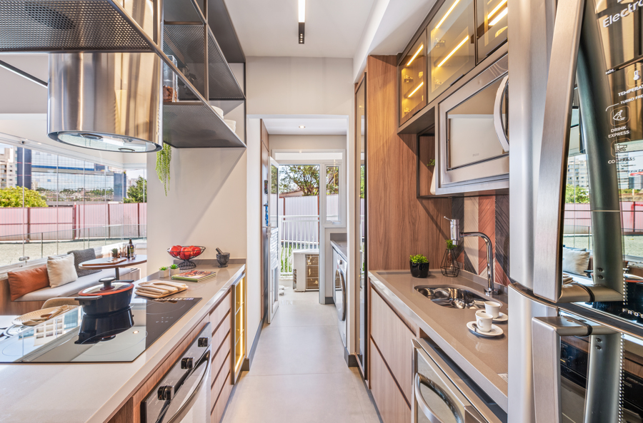 “Integrar toda a área social torna o ambiente mais versátil, aconchegante e traz a sensação de amplitude, visto que os espaços se tornam maiores e, assim, mais fluidos”, explica Brenda.