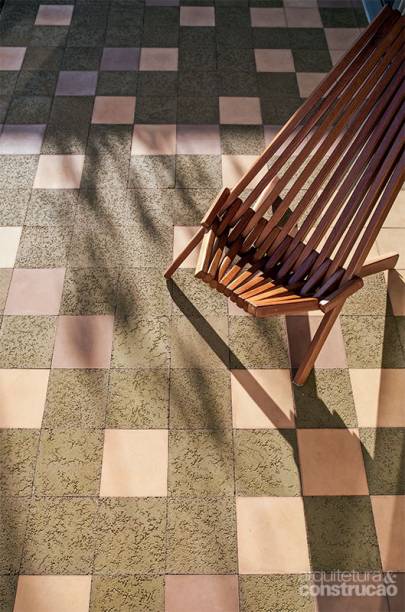 A percepção de espaço foi, ainda, influenciada pelas linhas retas da estrutura de concreto sem vigas nem pilares aparentes – eles estão embutidos nas laterais. “Gostamos de usar planos horizontais, com o térreo solto do solo e paralelo à laje.” Contínua, essa laje se desdobra em beirais com largura entre 60 cm (nos quartos) e 1,20 m (na sala), medida para proteger o interior contra as altas temperaturas. “Pensamos muito no conforto térmico como premissa sustentável. Além da implantação adequada em relação ao sol, grandes aberturas opostas favorecem a ventilação cruzada, dispensando ar-condicionado. Já o forro recebeu recheio isolante de poliestireno expandido [EPS].” Entre os acabamentos, predomina o visual básico do cimento nas paredes, nas bancadas e no piso de ladrilho hidráulico. Com certo capricho no tratamento, esses materiais adquirem outro status – caso do paredão da cozinha, detalhado com janelinhas redondas em fila. “A linguagem moderna mostra que é possível ter qualidade de vida com menos área construída e mais verde, tal como experimentamos na Holanda”, compara Marc.