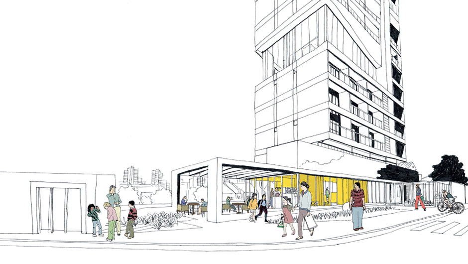 Encantadoras, as ilustrações desta matéria refletem desejos de quem está nas metrópoles: poder caminhar por calçadas largas e arborizadas, conviver com a vizinhança, ler num banco público, morar perto do trabalho sem perder tempo no trânsito. Essas perspectivas permeiam o novo Plano Diretor Estratégico (PDE) do Município de São Paulo, sancionado pelo prefeito, Fernando Haddad, em 31 de julho. No entanto, antes mesmo de sua aprovação, algumas incorporadoras frmaram parceria com arquitetos preocupados em dar mais vida a nosso ambiente urbano. “A morte da rua foi decretada quando surgiram os condomínios-clube, grandes empreendimentos murados com opções de lazer, mas que condenavam seus moradores a viver enclausurados numa suposta ilha de segurança”, sentencia o arquiteto José Ricardo Basiches.