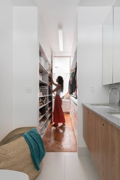 Este apartamento fica em uma das primeiras quadras construídas no Plano Piloto em Brasília e foi um achado dos clientes do escritório Lez Arquitetura, das arquitetas Gabriella Chiarelli e Marianna Resende. O imóvel tinha piso original de taco de madeira, janelas amplas e um pé-direito generoso. Características ideais para as profissionais o transformarem em um ambiente espaçoso e acolhedor. Para isso, fizeram uma reforma em que reorganizaram os fluxos e as divisões dos ambientes.