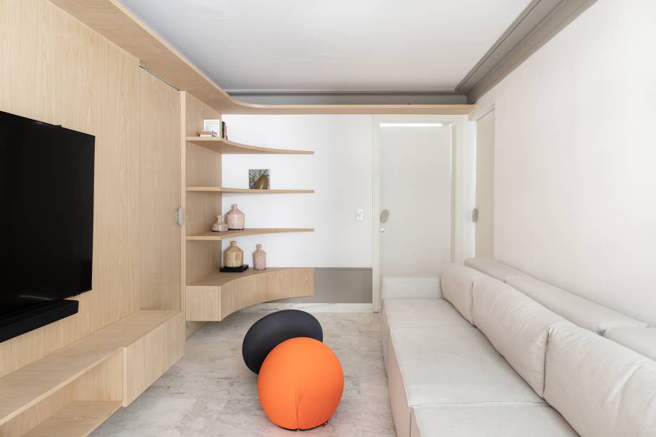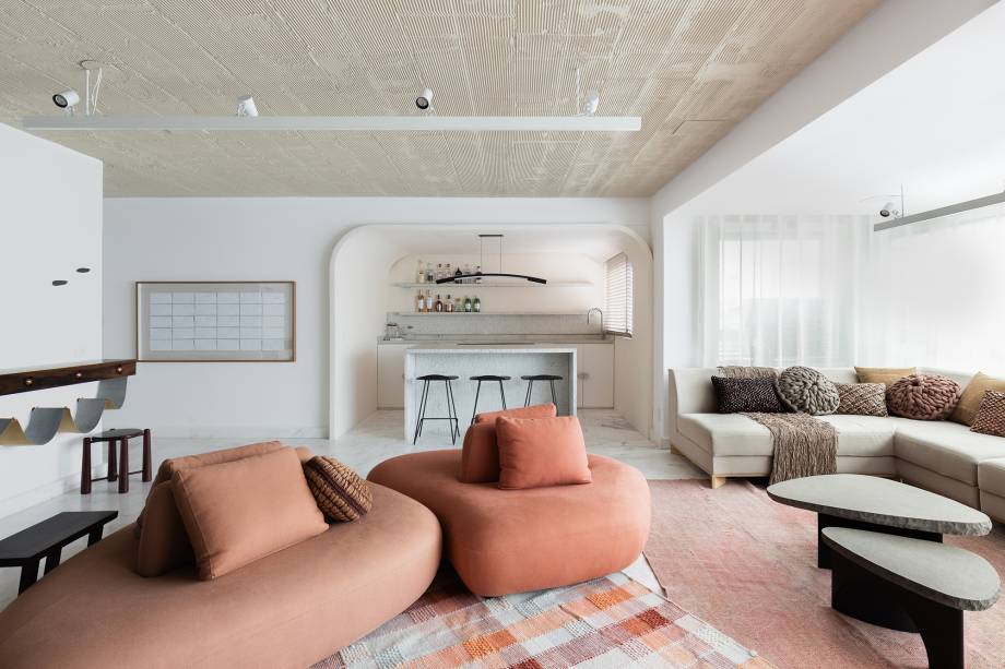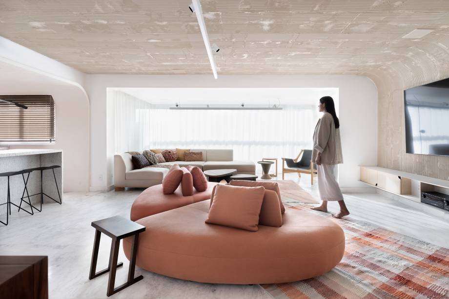 Formas curvas, layout fluido e bar marcam o projeto deste apê em São Paulo