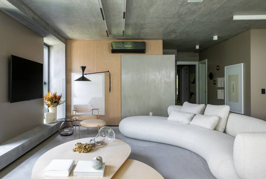 Formas orgânicas e tons neutros criam aconchego neste apê de 190 m²
