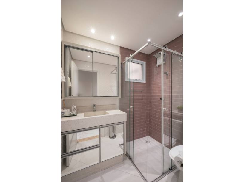 No andar superior, um porcelanato polido cobre o piso. “Temos superfícies com brilho em diversos locais porque os moradores adoram esse toque de glamour e elegância”, diz a arquiteta Priscila.