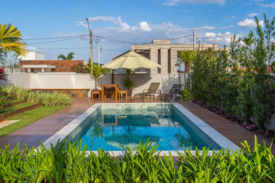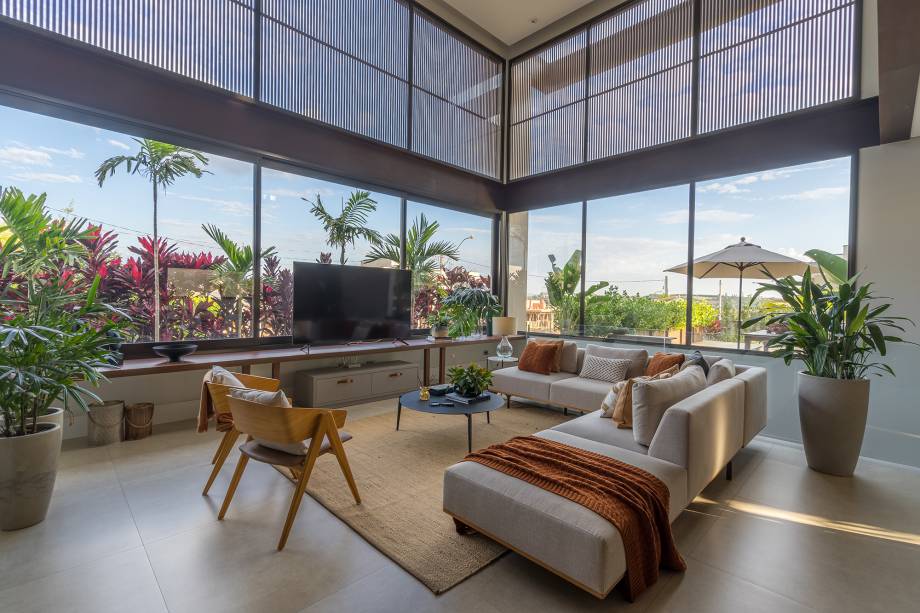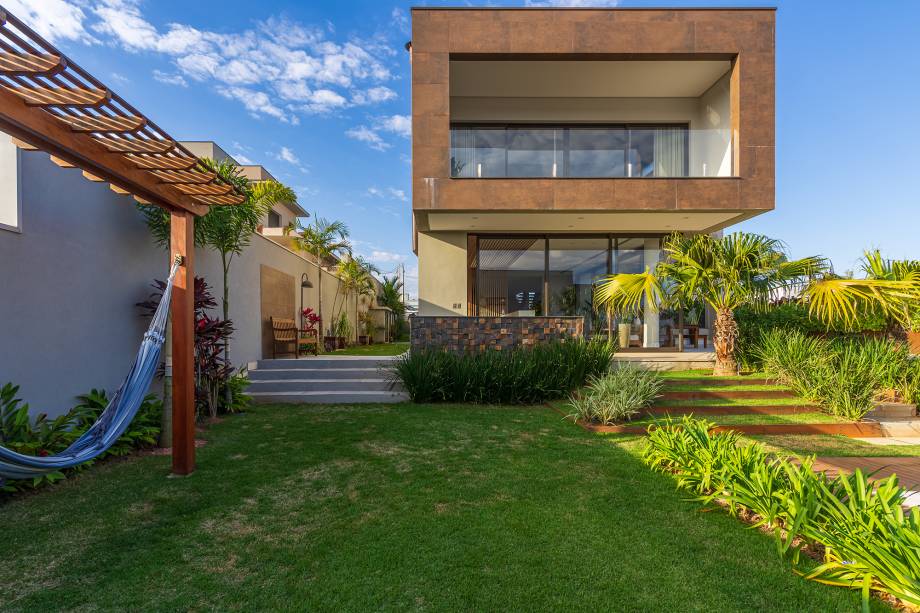 Com projeto de Beth Araújo e paisagismo de Renata Guastelli, o projeto tira partido da declividade do terreno